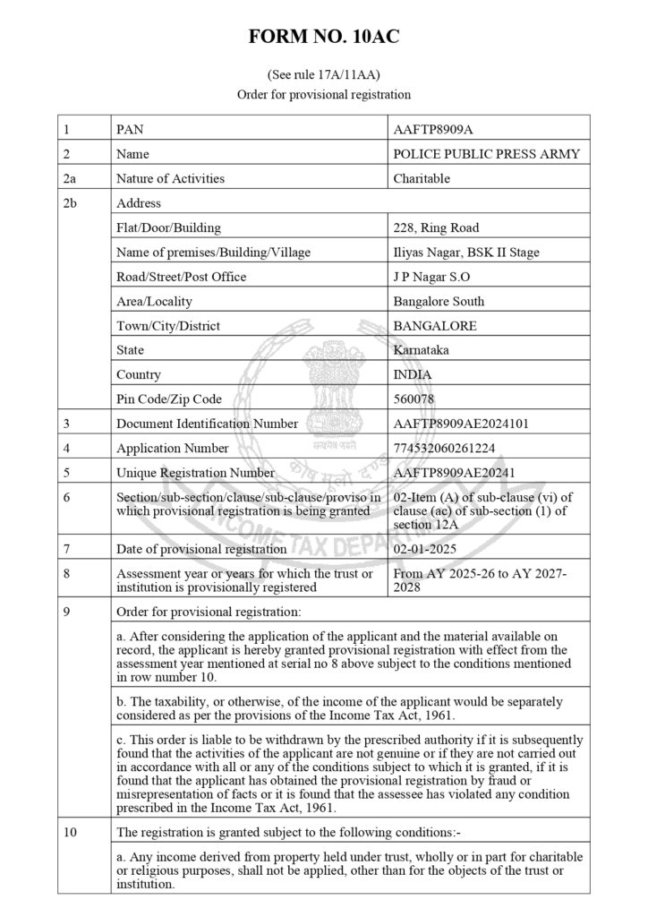 Police Public Press Army (Run By Ghouse Foundation)